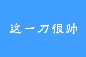 这一刀很帅